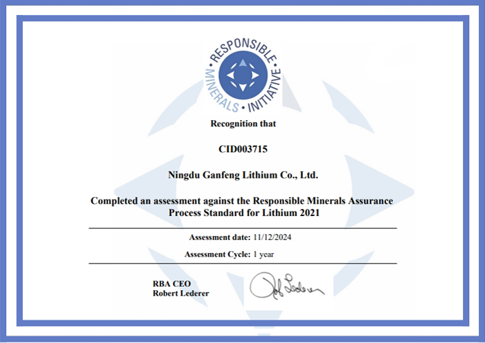 RMAP审验通过现场调查、设施排查、员工访谈和文件记录审阅以及"风险管理体系建设"、"风险识别和评估"、"风险减缓计划"等方面评估了宁都赣锋的负责任供应链管理流程。审验结果表明宁都赣锋负责任供应链管理流程的有效性与合规性,体现了公司持续为客户提供符合RMAP规定的优质产品和服务的能力。